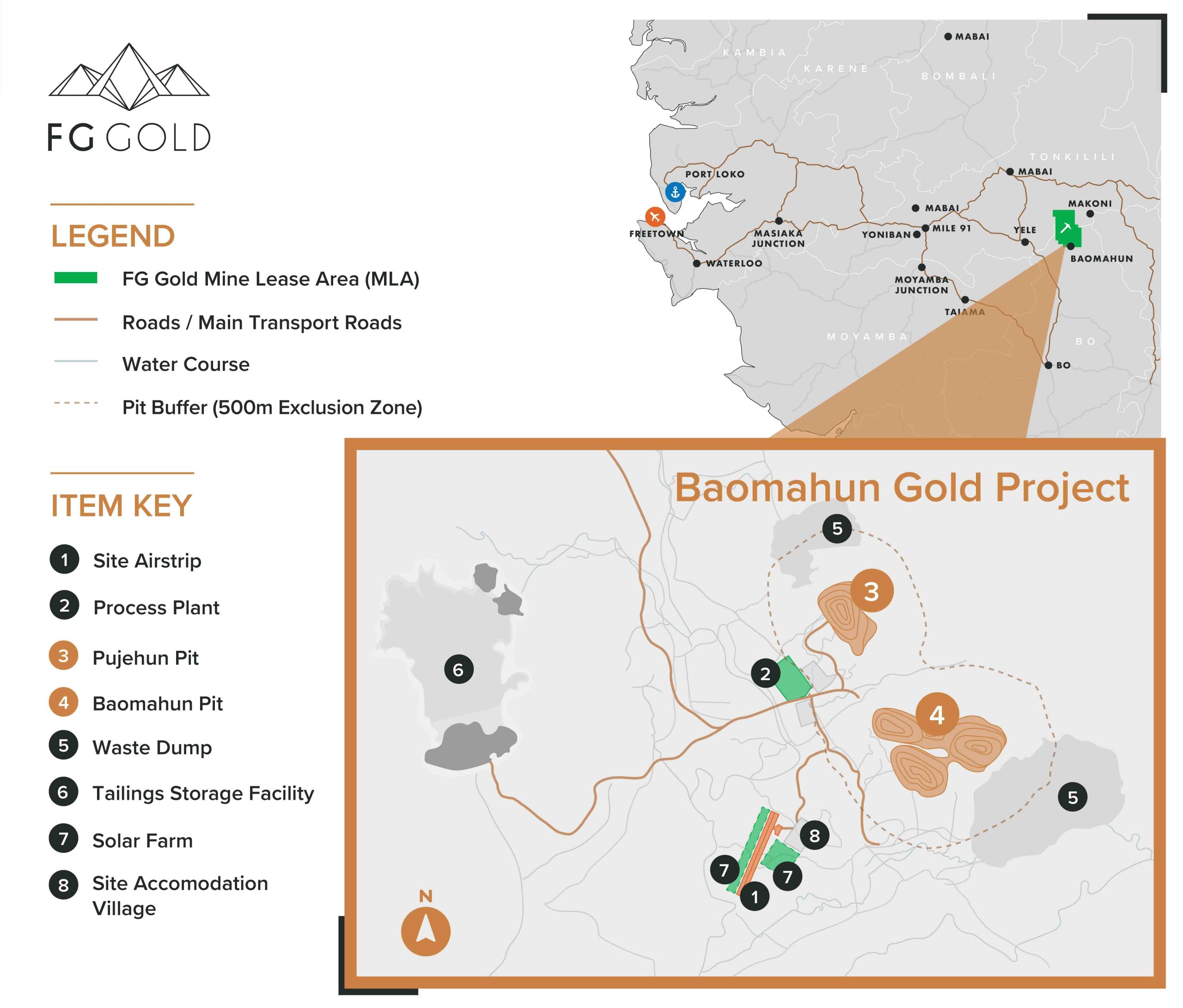 Early-stage preparatory site works to establish basic infrastructure commenced in Q3 2021 with large scale mining licence awarded by Government in Sierra Leone and environmental permits approved. Confirmatory drilling and feasibility studies concluded in Q4 2022. Early works and construction activities commenced in Q1, 2023, with the first gold pour set for 2025.